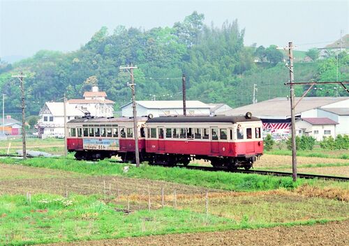廃止を表明した野上電鉄ですが、朝のラッシュ時には結構な頻度で列車が走っていました。よって、撮影場所を変えずに、しばらく重根~幡川に居座りました。 1.クハ104+モハ31 (重根~幡川:1993年4月) 再びクハ104の登場ですが、この時奇跡的に晴れました…