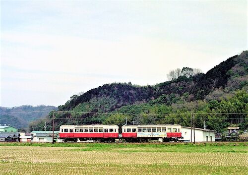 この日、朝から撮影に臨んだものの、走っていたのは単行のデ10形ばかりだったので、ふてくされて帰ろうかとも思いましたが、帰らなくて良かったです。 1.モハ32+モハ31 (野上中~北山:1994年3月) まさか朝の3列車運用が終わった後に、こんな2連が来ると…