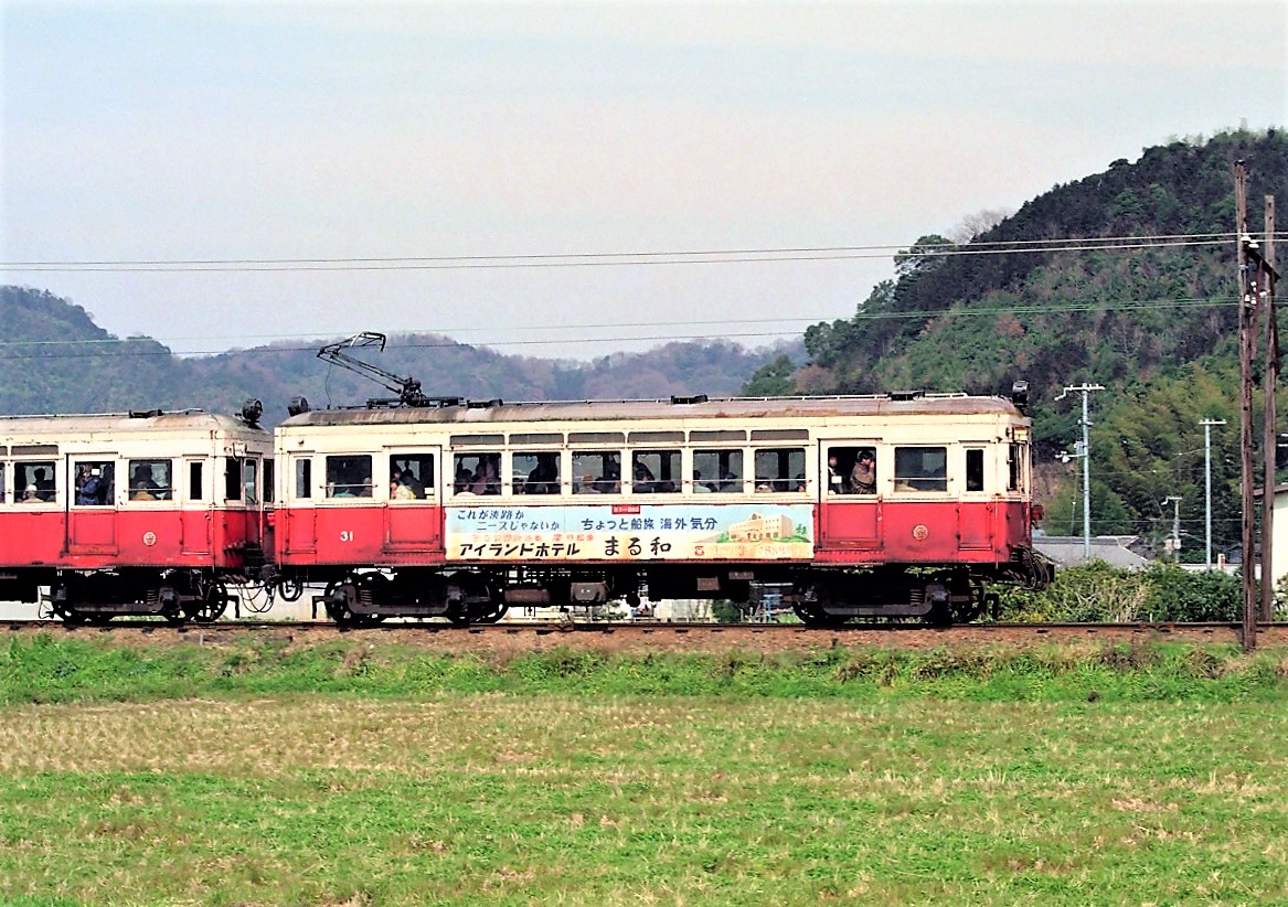 この電車を真横から撮ると、お馴染みの広告が・・・。廃止を目前に、この電車の画像があちこちに登場しましたが、この電車の広告も全国的に有名になった様ですね。